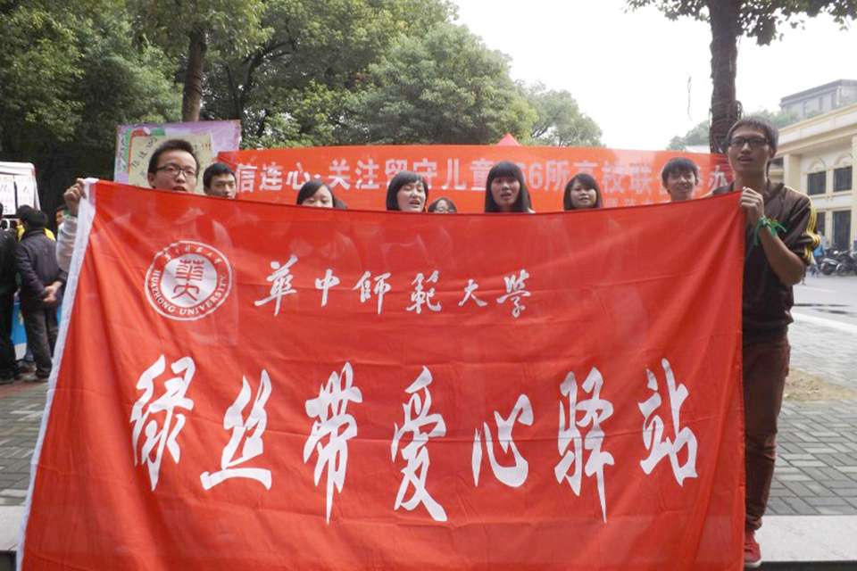 华中师范大学绿丝带爱心驿站(简称绿丝带)原名绿丝带义教团,是在华中师范大学校社联支持下,化学学院党委、院团委领导下成立的爱心公益类社团。社团于2008年6月组建,2008年11月正式成为校级社团。成长的日子里,在校社联的指导下,在化学学院团委学生会的支持下,社团逐渐发展壮大,组织开展了很多有特色有意义的爱心公益活动。