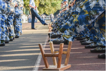喊到最后一个“一”时,教官们因长时间喊叫,声音已变得嘶哑。尽管这样,口号依然掷地有声,铿锵有力。