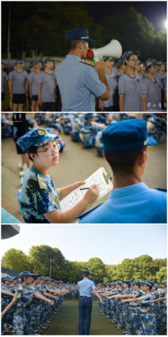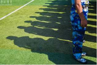 双手不能紧贴裤缝,就夹张扑克牌;握手姿势不对,就手握物品;走步不标准,教官亲自示范、手把手教学。日复一日的军训晒黑了小蓝人的脸,褪去了他们稚嫩的外衣,原本温顺的眼神里,已渐渐练出了锋芒。