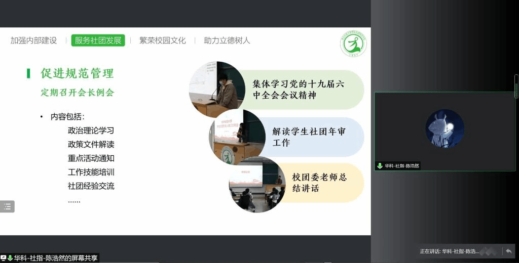 华中科技大学学生社团指导中心副主任陈浩然分享经验
