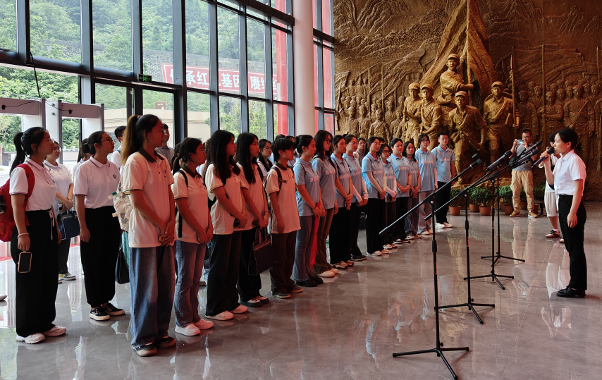 随后,全体师生移步至桐梓·青春永恒展厅,该展厅以中央红军中被誉为“最年轻队伍”的少共国际师从诞生到整编这一历史事件为主线,讲述了少共国际师从一支预备队成长为中央红军主力部队之一,并随中央红军踏上伟大长征之路的故事。在展厅内,华师研习团队员们倾听“烽火中诞生”“烈火中淬炼”“炮火中搏击”“战火中涅槃” 四个部分的讲解介绍,深入了解中国工农红军少共国际师成长历程,并在《再见了,我亲爱的母亲》的朗诵中体悟以少共国际师为优秀代表的一代中国青少年“愿把热血染红旗”的崇高精神和青春本色。