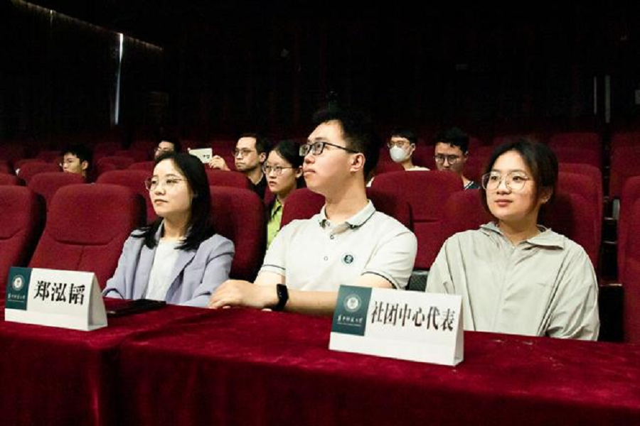 活动开始,主持人介绍了此次活动的嘉宾:政治与国际关系学院团委书记魏露、副书记郑泓韬以及学院社团管理部成员黄璐荧。本次活动还特别邀请了湖北省京剧院的乐队老师们。
