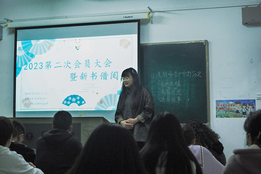 华大社团中心讯(通讯员:秦宇航 邓子青)为丰富社团文化,促进新老会员之间的联系,11月17日晚上,华中师范大学日语协会(学生)(以下简称“日语协会”)在3107教室开展2023年第二次会员大会暨新书借阅会活动。在日语协会会长陈喆的带领下,本次大会顺利拉开序幕。