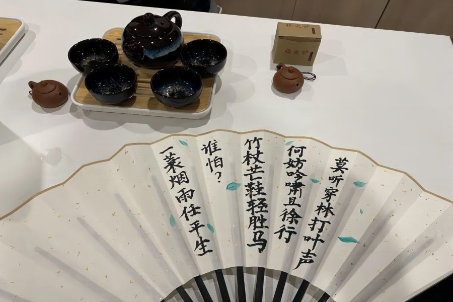 在书法体验区,同学们认真学习书法技巧并尝试下笔。现场还设有折扇创作环节,参与者可在空白扇面上自行创作,带回留念。掐丝珐琅、茶艺品鉴、剪纸等环节也吸引了众多同学参与。信息管理学院2023级张欣怡同学说:“第一次喝碧螺春,原来是这个味道,感觉茶艺文化博大精深,以后想继续了解相关茶文化!”