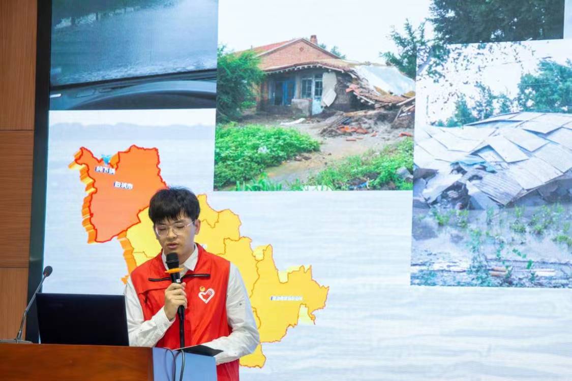 陶政翰同学结合自身成长经历,以《不啻微茫,草根奋力向骄阳》为题,分享了从“小红帽”到“红马甲”的传承故事。他讲述,十年前,他的家乡吉林省白城市经历了特大洪水灾难,是无数位甘于奉献、不怕牺牲的志愿者们保护了他们的生命安全;十年后的今天,他也积极投身志愿服务活动,成为了一名光荣的青年志愿者。他希望青年们发扬志愿精神,传递正能量,以实际行动书写新时代的雷锋故事。