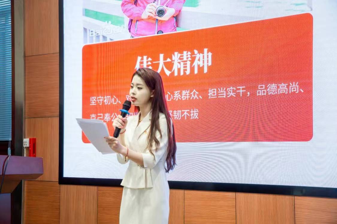 于泠珺同学以《挺中国脊梁,奉青春热血》为题进行演讲。她化用“愿以此身长报国,何须生入玉门关”等诗句,从三个方面阐述了陈祥榕、黄文秀等优秀青年发挥榜样力量的故事。她希望当代青年锤炼不畏强敌、不惧风险、敢于斗争、勇于胜利的品质,全力战胜前进道路上的各种困难和挑战,向着既定目标奋勇前行。