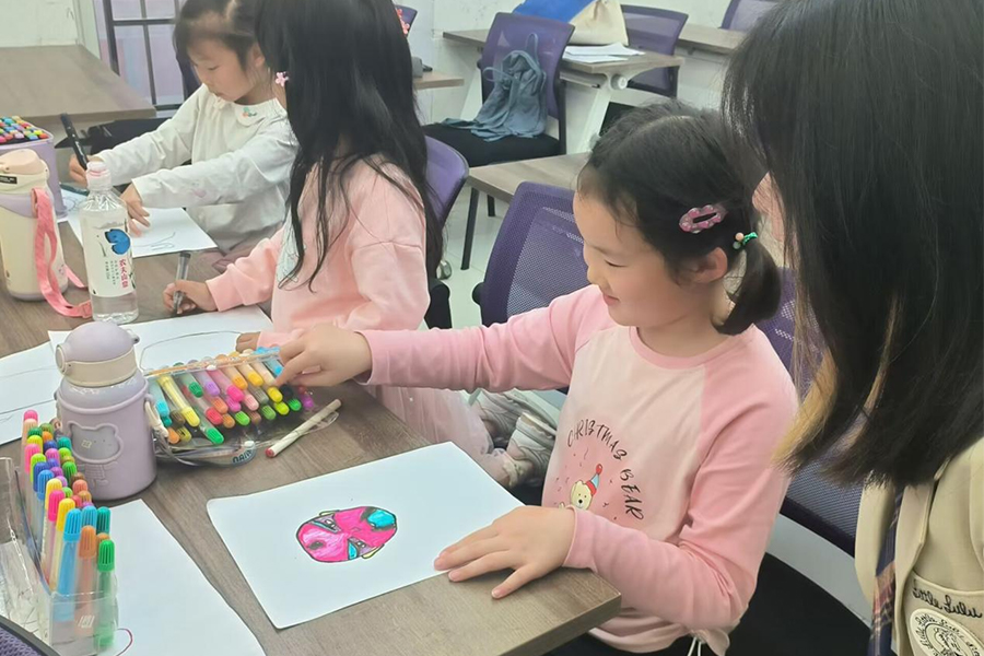 立新组孙佳琪、袁佳艺则向宝安社区的小朋友们讲授了《美,不止一面》《中国传统文化——中国龙》等素质课程,夯实孩子们的文化自信之基。孙佳琪为孩子们带来主题为《美,不止一面》的课程教学,带领他们简单了解美与审美,引导孩子们拥有对美的深刻理解。随后,她以西方艺术作品为切入点,让孩子们初步认识西方艺术史,鼓励孩子们思考不同艺术之美,提高孩子们的审美素养。进入自由创作环节后,孩子们将知识化为实际行动,创作自己心中的美。