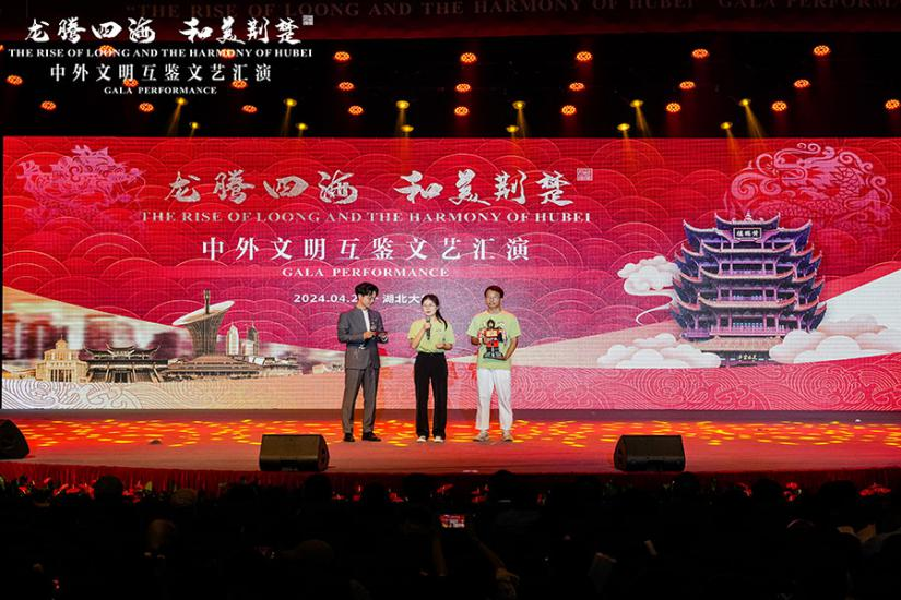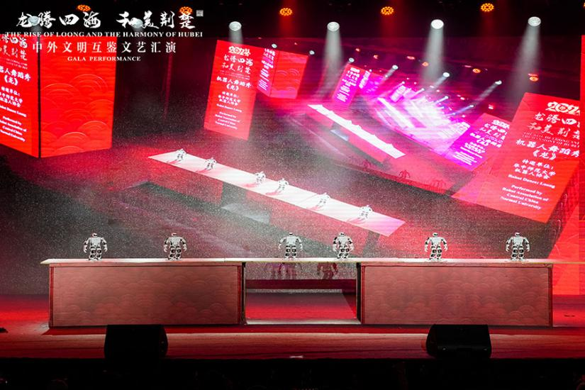 华大社团中心讯(通讯员:杜佳)4月20日晚,华中师范大学机器人协会(学生)受邀参加了湖北大学举办的“龙腾四海,和美荆楚”中外文明互鉴文艺汇演。协会共19名成员参与了本次活动,根据歌曲《龙》来设计机器人的各个舞蹈动作,参照舞台的大小进行机器人数量和站位的调整,经过不断地彩排和细节优化,最终呈现了一个总时长为5分钟的表演。表演内容作为整个晚会“龙”这一主题的一部分,对“龙之科技”进行了生动的演绎。表演将机器人科技和中国传统文化相结合,呈现出独特的文化魅力,科技与文化交流碰撞,互鉴共赏。