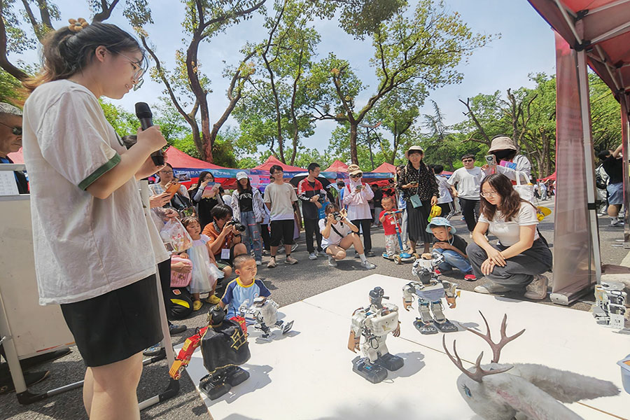 华大社团中心讯(通讯员: 俞兴 罗楠 黄丝语 梁智浩)5月18日,由共青团华中师范大学委员会主办、华中师范大学学生社团指导中心承办的2024年学生社团文化节游园会展在桂中路拉开帷幕。华中师范大学机器人协会会长曾万康带领社团成员共计三十三人参与活动,并精心准备了多场机器人舞台剧,为现场观众呈现了一场视觉盛宴,充分展现了机器人舞蹈的魅力和风采。