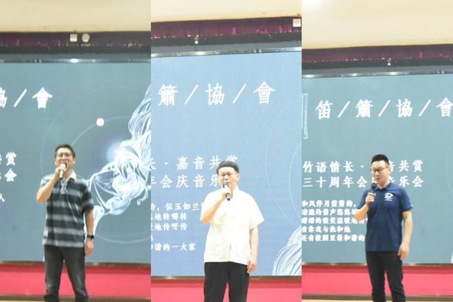我校信息管理学院领导老师高度重视笛箫协会此次三十周年“竹语情长,嘉音共赏”会庆。此次会庆笛箫协会指导老师娄策群,李玉海与笛箫协会会长杨琛,会员何子恒共同登台合奏中华传统曲目《小放牛》,前音接带后调,后调跟随前曲,师生共奏,其乐融融。