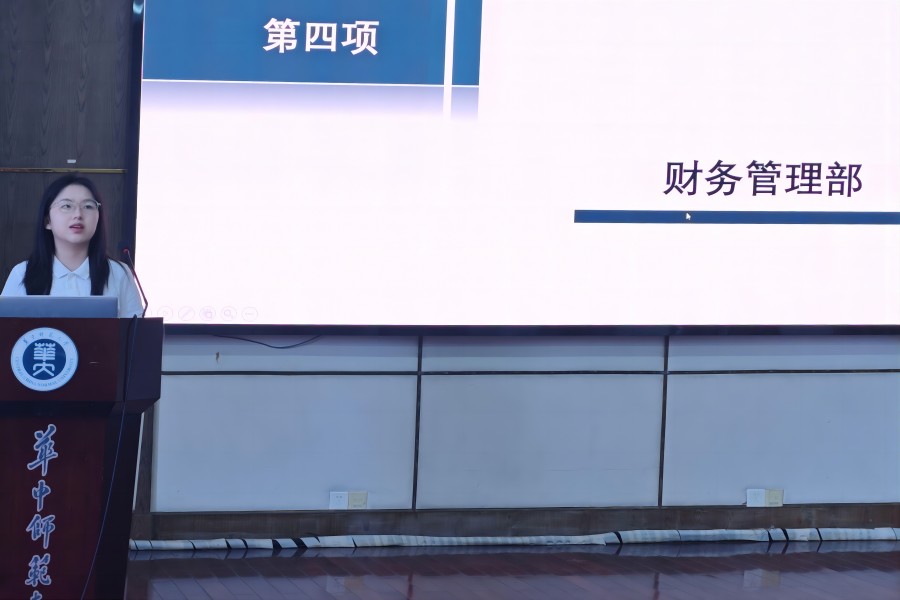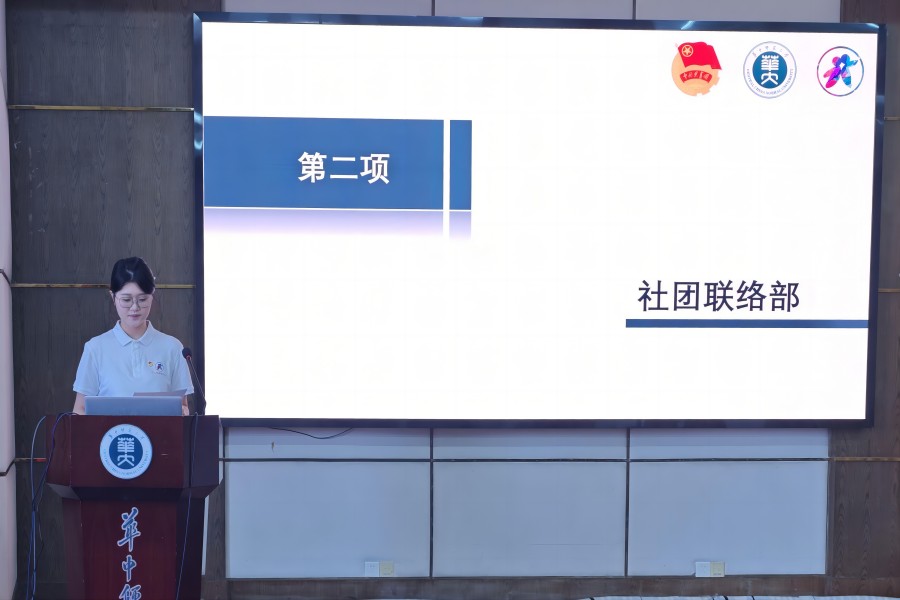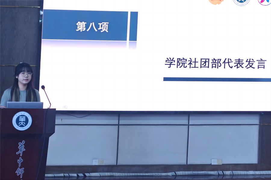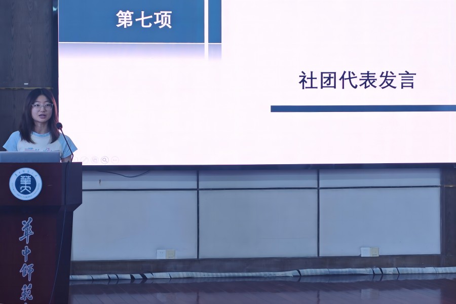 接着,华中师范大学法学协会学生代表徐娜和城市与环境科学学院社团部负责人赵书勤分别上台发言。结合各自的实际情况,徐娜介绍了法学协会的活动内容与成果、团支部建设、精品活动、普法宣传及对未来的规划,为其他社团提供了宝贵的经验。赵书勤则分享了社团部上个学年的工作心得、创新计划、与指导老师沟通机制及对未来的展望,为其他社团部的建设树立了良好的榜样。