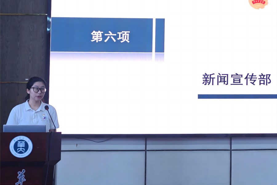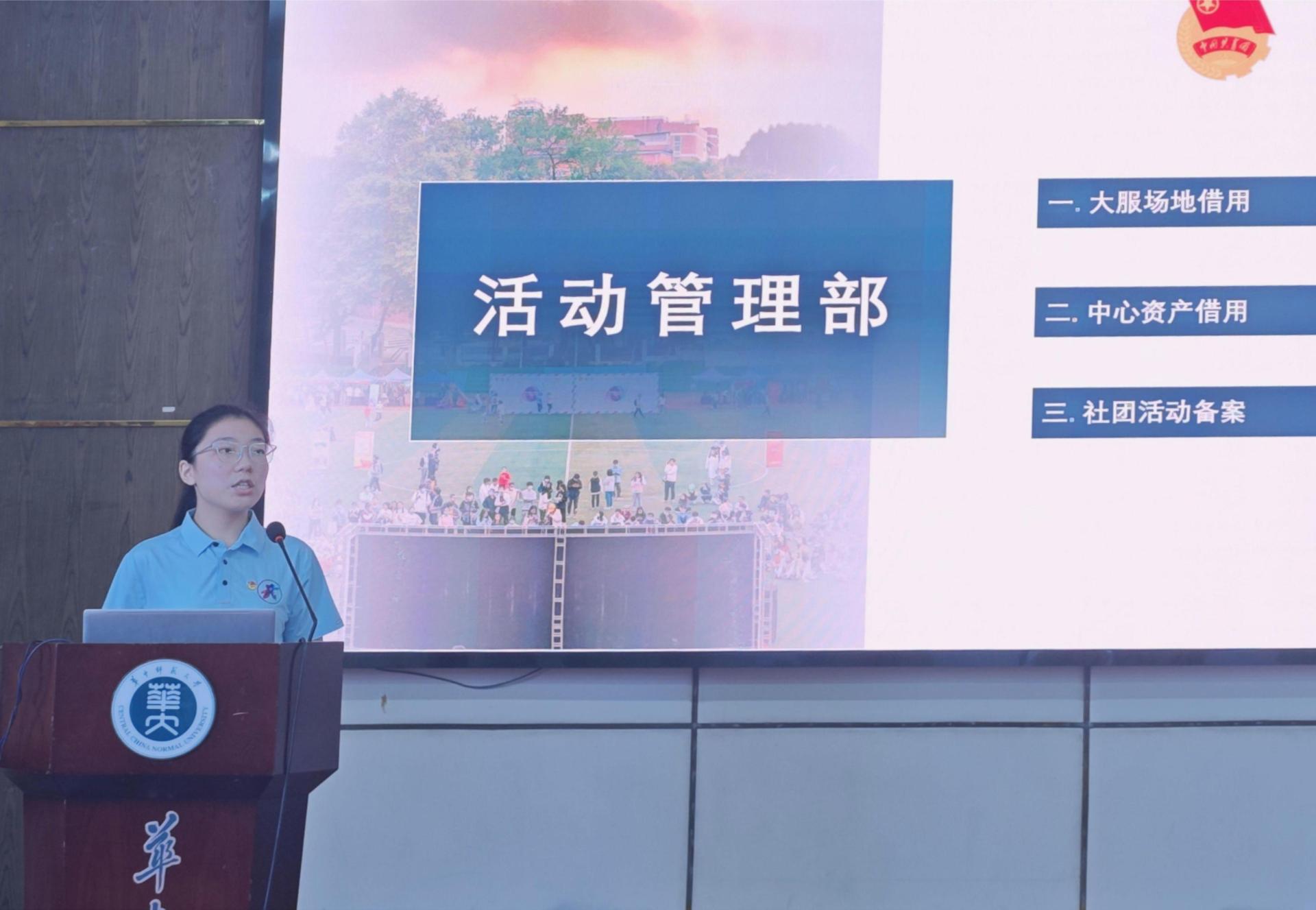 会议开始阶段,社团中心主任张佳欣对上一学年的工作亮点与成果进行了系统性回顾,并从百团招新活动、社团年审、星级评定机制和十佳社团评选等多个方面进行了规划。紧接着,社团中心各主要学生骨干逐一上台,就各自分管部门的工作进行了交流讲解。