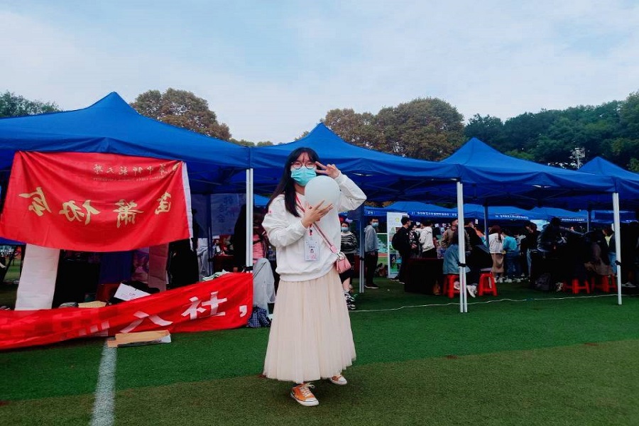 华大社团中心讯(通讯员 方晓芬)蒋素,教育学院2018级本科生,曾任华中师范大学学生社团指导中心秘书处部长,曾获社团活动积极分子、优秀共青团干部(学生)等荣誉称号。在担任学生社团指导中心秘书处部长期间,蒋素保持着对学生工作的热爱,努力尝试与探索,不断突破自我,在一次次挑战与拼搏的过程中,追寻到了前进的勇气和力量。