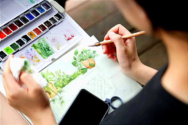 白天,同学们在老师带领下进村子专业写生与人文考察。晚上,两位老师在写生基地教室里举行作业点评与专业交流。从描绘徽派建筑到自然风光再到风土人情,同学们围坐一团欣赏作品,王翔和谭政老师也会及时给予学生指导意见,并在集中点评中强调存在的问题。在乡村观察体验的过程中,同学们深入瑶里古镇,用心感受当地的风土人情,了解悠久的红色文化,致力于描绘此间的古朴自然与其独特的艺术魅力。