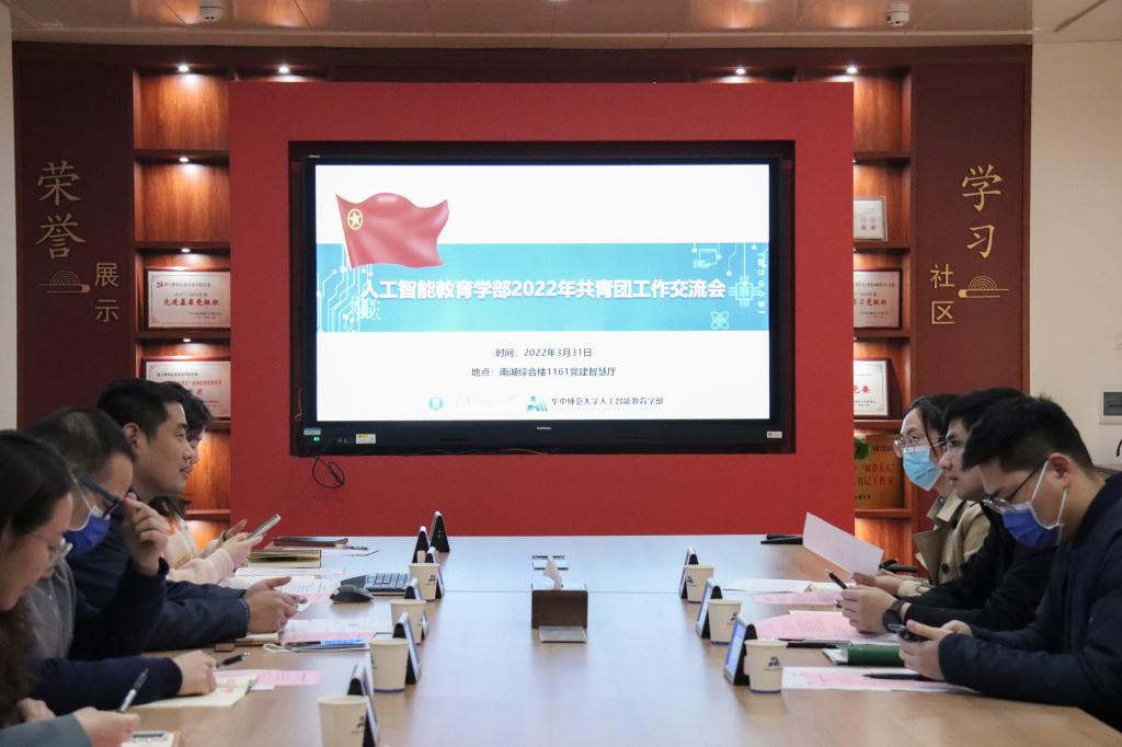华大青年讯(通讯员 陈文珺 陈伊然)为进一步提升人工智能教育学部共青团工作整体水平,梳理2021年工作情况,谋划2022年工作思路,3月31日下午,人工智能教育学部2022年共青团工作交流会在南湖综合楼1161党建智慧厅举办。本次交流会的参会人员有校团委副书记陶力、校团委校园文化部与科创实践部部长杨颖佳、校团委宣传部部长卢俊霖、人工智能教育学部团委书记宋陈虹依、人工智能教育学部团委副书记张志、人工智能教育学部团委副书记文乐胜、人工智能教育学部团委学生会主席团成员高兴愉、童丁诺。人工智能教育学部党委副书记陈晓宇主持本次会议。