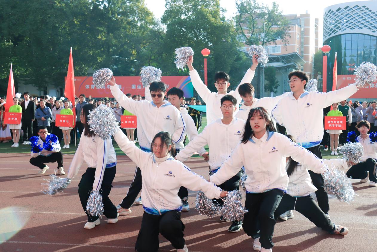青春激昂,奋勇向前。体育学院院长王斌宣布开幕式开始。在学院代表队入场环节,运动员方阵不负学子众望,展现学部勇往直前的风貌,彰显青春朝气蓬勃的本色。旗手双手执旗,率领学部方阵向主席台走来,方阵成员步履坚定,气宇轩昂。学部旗帜迎风飘扬,展示着学部团结一心、昂扬向上的精神面貌。方阵行至主席台正前方,方阵成员有序变换队形,利用拼接展板作为背景,进行了学部特色舞蹈表演。伴随着青春洋溢的歌曲,学部成员们挥舞着花球,摆动着身姿,诠释出人工智能教育学部独特的风采。