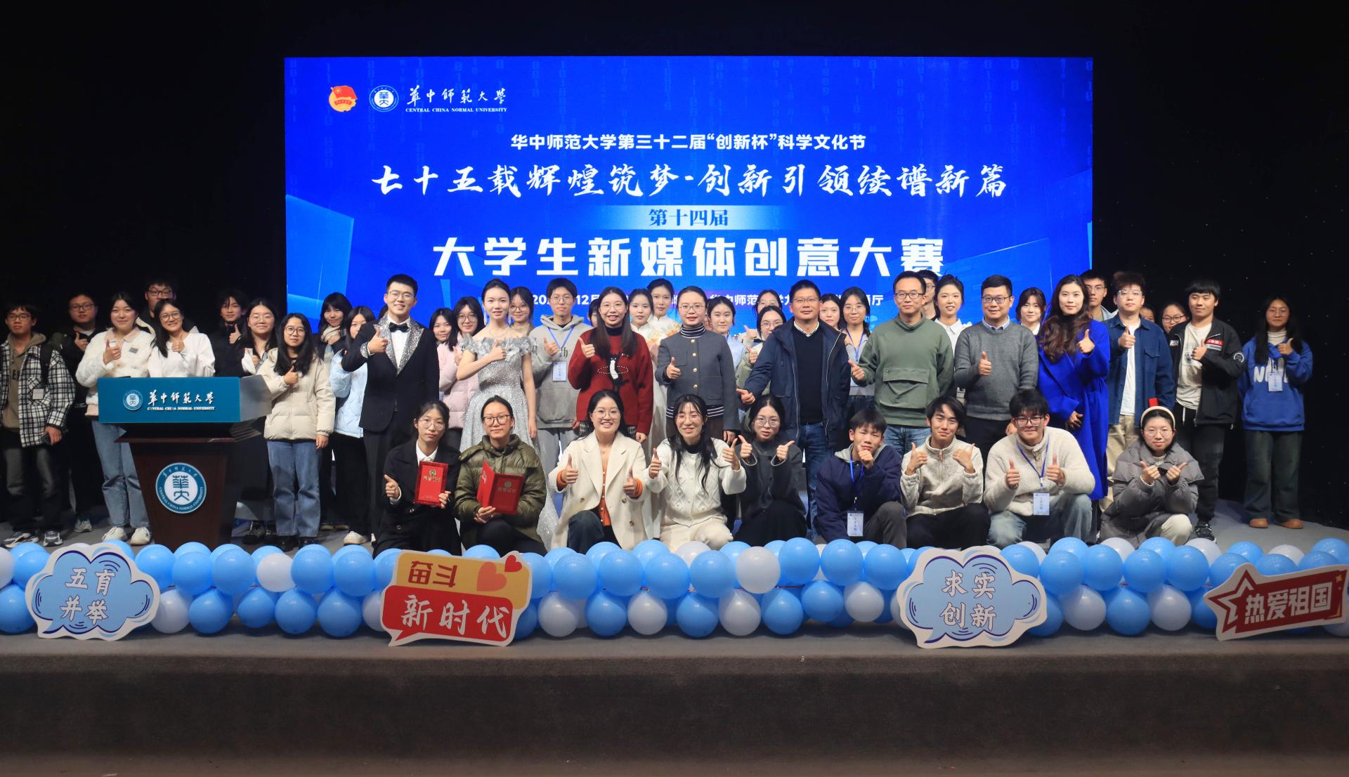 据悉,华中师范大学大学生新媒体创意大赛,是学校科学文化节的重要品牌活动,自2011年至今,已经举办了十三届,为同学们了解和应用新媒体创意与技术提供了广阔的舞台。展望未来,希望青年学子能创作出更多思想精深、艺术精湛、制作精良的新媒体作品,持续用创意赋能文化繁荣、用内心感应时代脉搏,以更加坚定的步伐,投身于实现中华民族伟大复兴的壮丽征程。