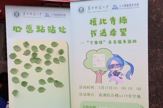 华大青年讯(通讯员 樊佳慧) 3月12日,正值第47个植树节和第62个学雷锋月,人工智能教育学部青年志愿者协会于南湖综合楼旁举办 “学雷锋・植此青绿・书送希望” 主题志愿服务,以实际行动践行绿色发展理念,传承和弘扬雷锋精神。
