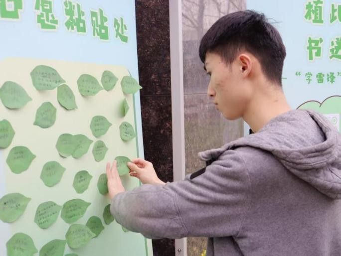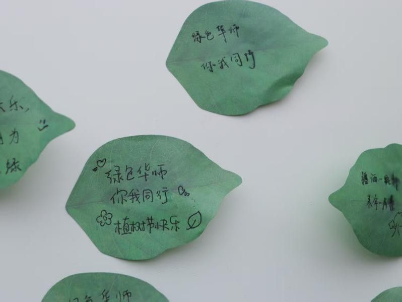 活动现场特别设置的打卡区,为师生提供了一个表达环保心愿和植树节祝福的平台。在这里,大家纷纷在绿叶便签上写下自己的环保心愿,如倡导低碳出行、减少资源浪费等,同时也寄托了对植树节的美好祝福。这些便签,如同一片片生机勃勃的绿叶,汇聚成师生们对绿色未来的美好期许,传递着人与自然和谐共生的理念。