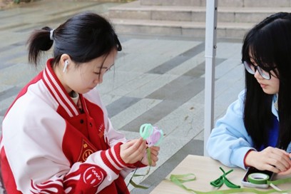 手工体验区是活动的一大亮点。在书签制作环节,参与者围聚在工作台,挑选心仪的干花与树叶,经过剪裁、粘贴等步骤,将这些自然元素与书签融合。同时,志愿者教授大家使用扭扭棒,发挥创意制作出形态各异的花卉。这些手工制品不仅是一件装饰品,更是绿色环保理念的生动载体,也让参与者在动手实践的过程中深刻体会到了环保与艺术相结合的魅力,进一步增强了他们的环保意识。