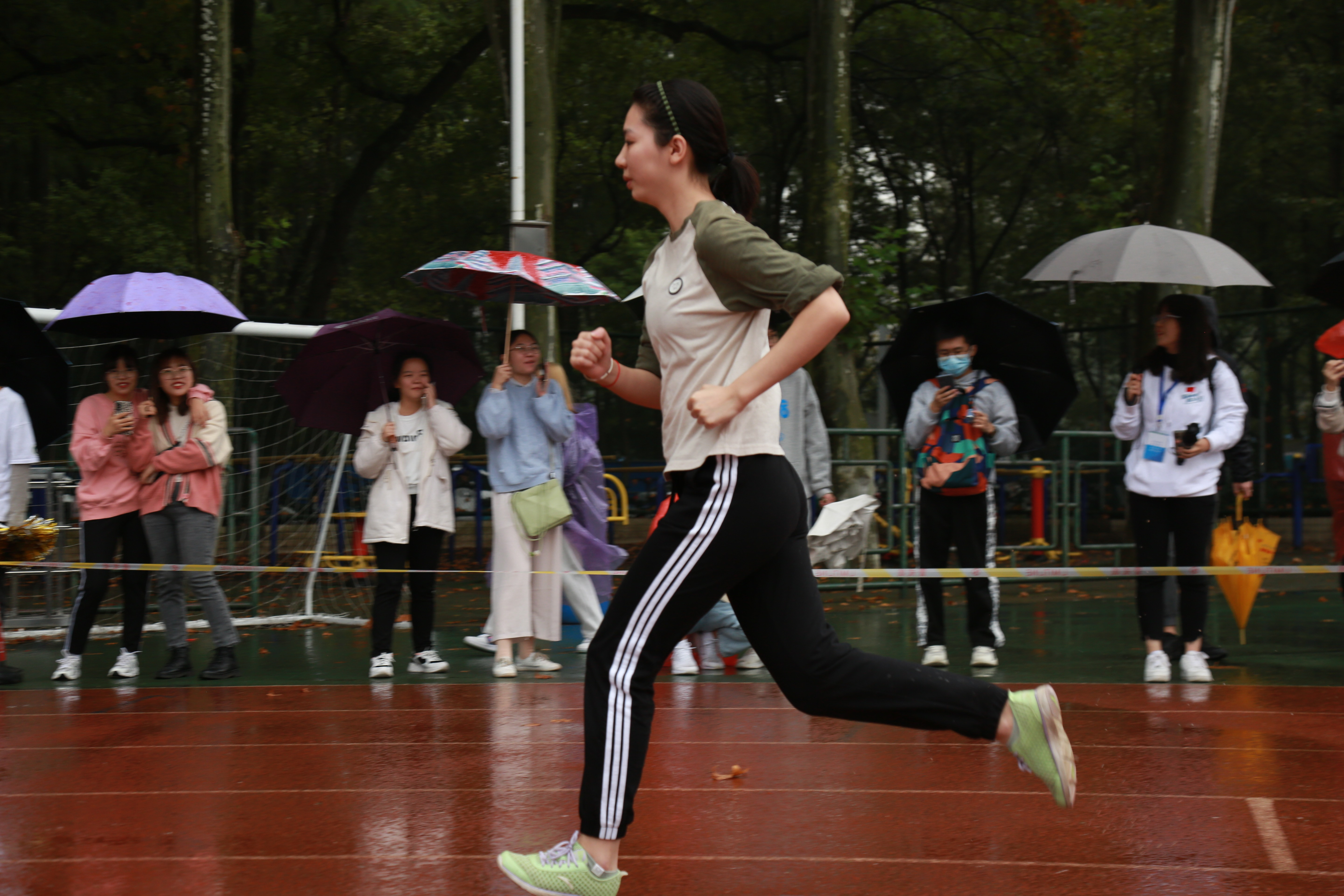 2020级研究生钟悦首次报名参加女子400米比赛,赛前她每晚都去操场刻苦练习以锻炼自己的速度和耐力,全力备战校运会。赛后问及比赛感想,她说道:“这次比赛已经是超常发挥了,同时也希望之后能把跑步变成自己的一项兴趣爱好,坚持跑下去。”坚持不懈、锲而不舍才会有滴水穿石的力量。最后,她还表示特别感谢院研会的贴心安排,“给我们每一位运动员安排了专门的陪同人员”。