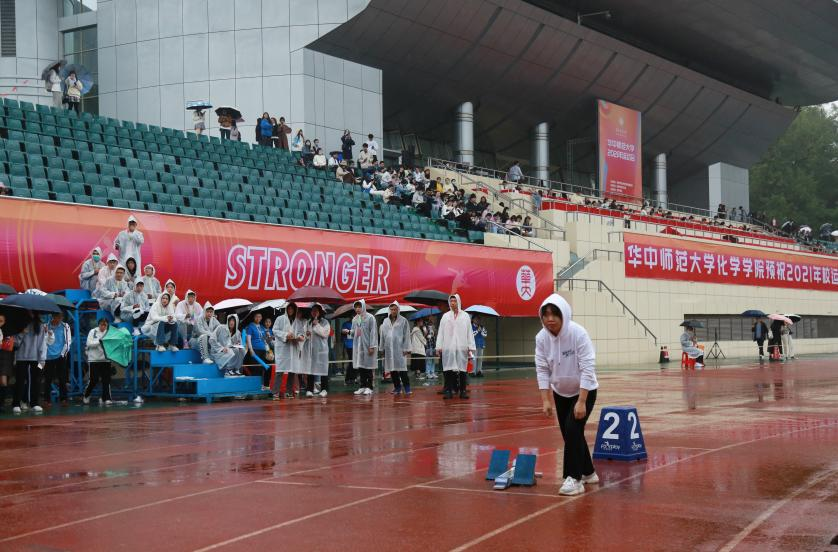 400米决赛开始在即,天空却淅淅沥沥地下起了雨,突如其来的深秋雨带着寒意,但赛场的氛围却如烈火般炙热。雨落沾衣,却浇不湿运动健儿们愈加高涨的士气以及观众们助威呐喊的热情。