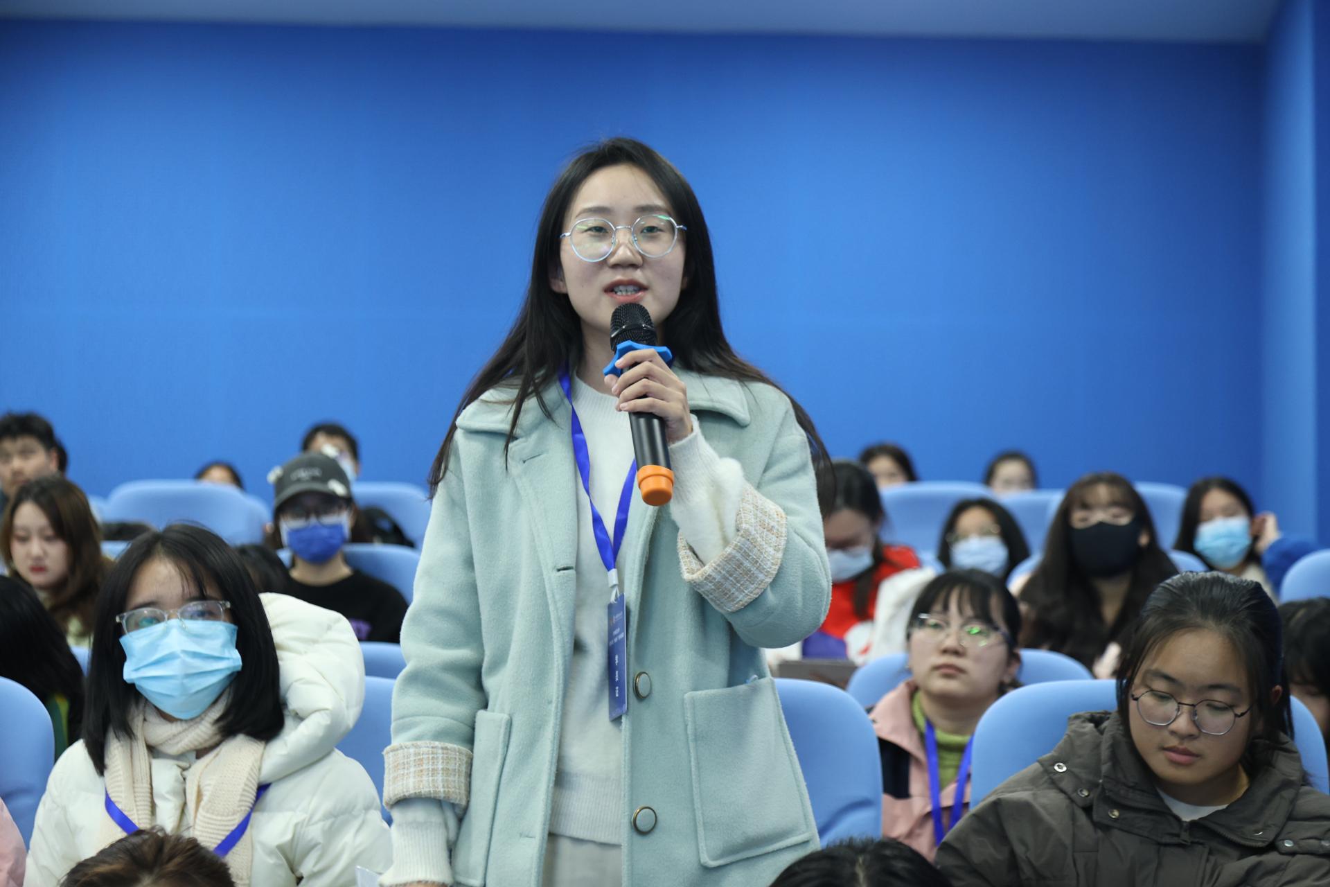 上海大学社会学院第十八届“挑战杯”国赛特等奖《“艺”呼百应,旧里焕新:艺术融入城市社区治理的实践探索与分析》项目团队代表郑沅芷同学首先围绕团队项目主题为同学们生动模拟了国赛现场答辩,从问题意识、实践推演、保障机制和未来出路四个方面全方位展示团队成果。接着,她结合自身经历,从比赛流程介绍、调研报告撰写、赛事经验分享三方面总结经验并提出建议。她认为挑战杯是一场关于毅力、努力、能力的比赛,并鼓励同学们要兼具理想主义与现实主义、兼具积极进取的意识与静待花开的坚持,争做胸怀祖国、放眼世界、心系社会、志在利民的“挑战杯”人。