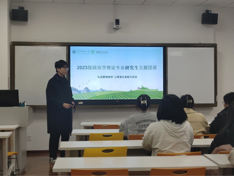 2023级研究生第一团支部开展了学雷锋主题团课,以“弘扬雷锋精神,让青春在奉献中绽放”为题,引导支部成员学习“要做艰苦奋斗、无私奉献的模范,带头站稳人民立场,脚踏实地、求真务实,吃苦在前、享受在后,甘于做一颗永不生锈的螺丝钉”的新时代雷锋精神,号召同学们努力成为有理想、敢担当、能吃苦、肯奋斗的新时代好青年,让青春在全面建设社会主义现代化国家的火热实践中绽放绚丽之花。