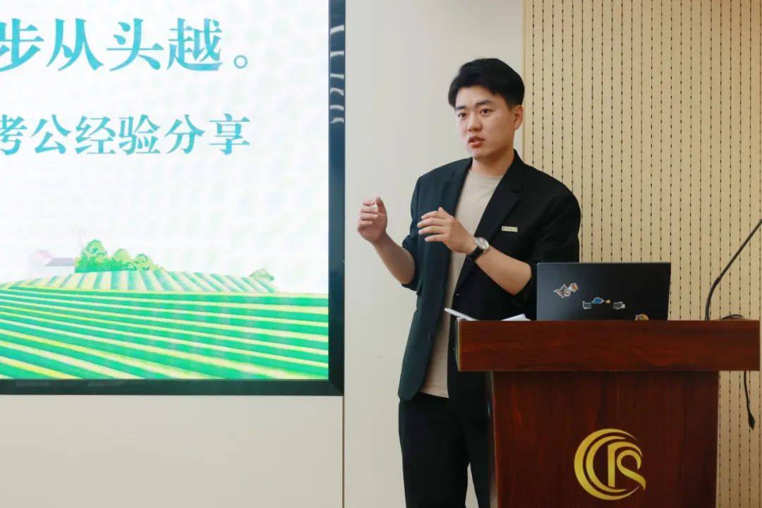 王磊从时间规划、岗位选择、笔试备考、面试备考等方面介绍了考公备考的整个流程。他结合自己实际经历,就公考中职位选择、面试流程和常见问题做了生动细致地讲解,并分享了面试的类型以及注意事项,让大家对整个公考过程有更为直观和深入的了解。此外,王磊也为大家的考公之旅提出几点建议:一是找个考公好搭子;二是找好重点,做好规划;三是提升信息搜集和筛选能力;四是注意劳逸结合;五是体检前要预检。最后,王磊以“道阻且长,行则将至”激励大家,希望每位同学都能坚定信念,奋而向前!