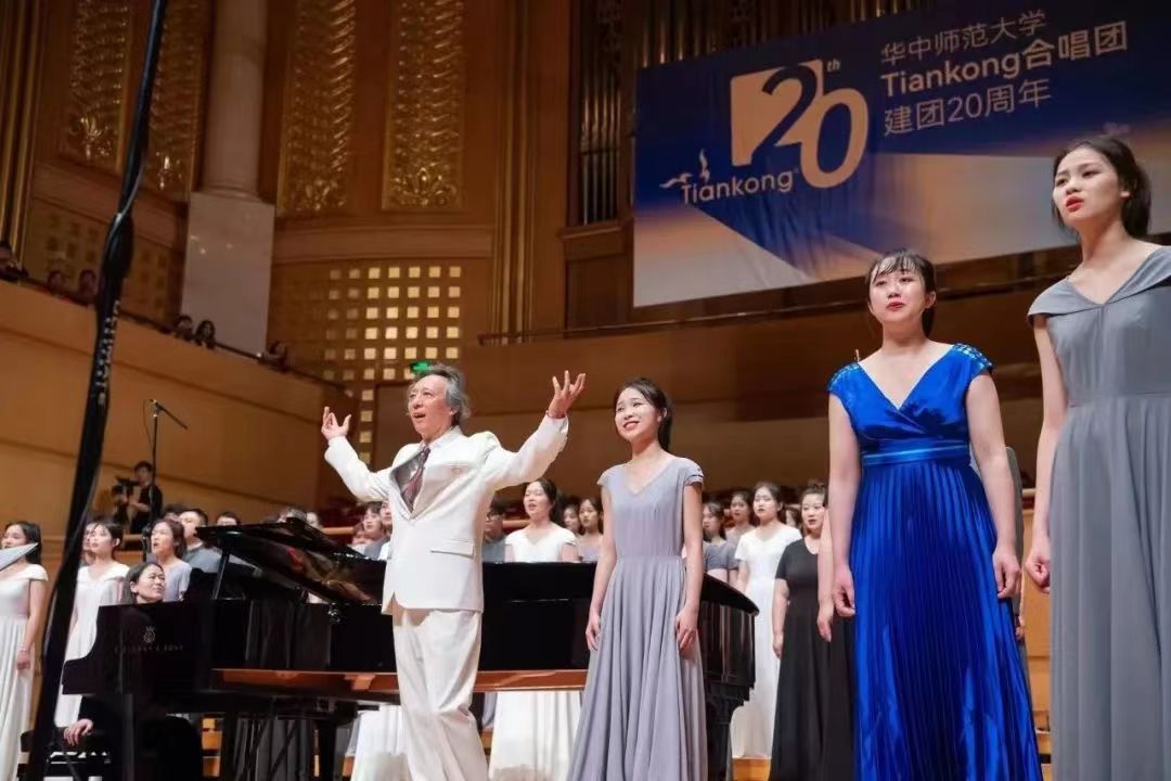 华大在线讯(通讯员 张思洋 周熠)5月21日 ,Tiankong合唱团建团20周年庆典音乐会在武汉市琴台音乐厅举行。原华中科技大学党委书记路钢,湖北省政协常委、省人民政协理论研究会会长翟天山,原华中师范大学党委书记马敏,中国地质大学(武汉)党委书记黄晓玫,武汉理工大学校长杨宗凯,中国太保产险湖北分公司党委书记、总经理周厚钬,华中师范大学副校长任友洲、李鸿飞,武汉市团委副书记郎坤,以及来自湖北省委宣传部、湖北省教育厅、湖北省群艺馆相关领导和来自各地合唱协会的嘉宾出席本场音乐会。Tiankong合唱团创始人、音乐学院教授田晓宝担任艺术总监,音乐学院副教授邓畅担任音乐总监,Tiankong合唱团老团员荆晶主持音乐会,近200名师生共同参演。