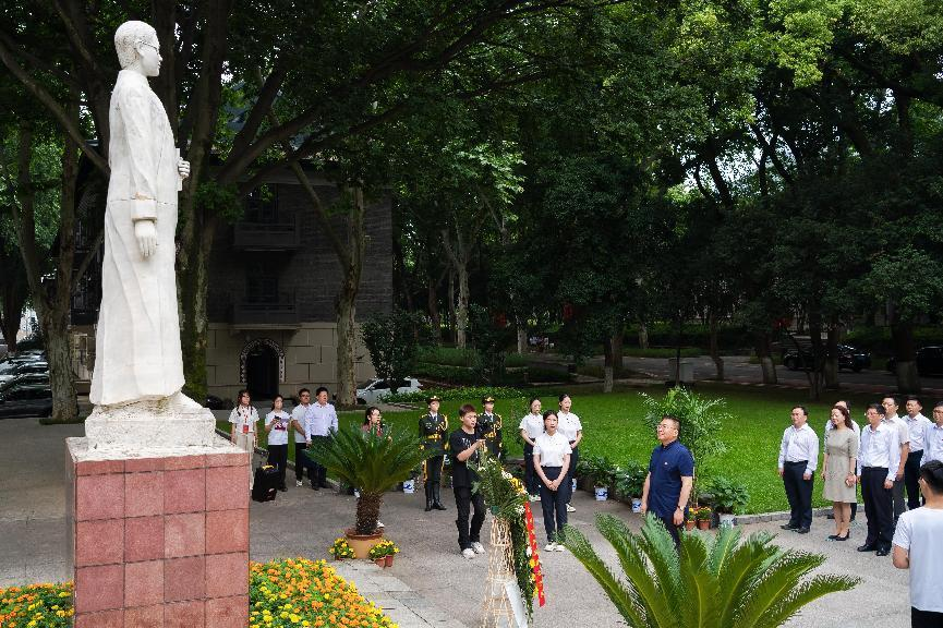 郭业洲、诸葛宇杰一行来到恽代英广场,瞻仰恽代英同志雕像并敬献鲜花,向革命先烈表达深切哀思,致以崇高敬意。