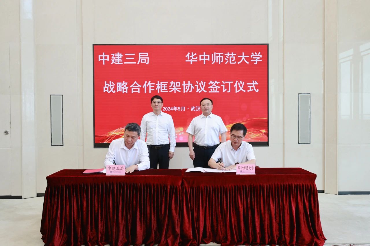 华大在线讯(通讯员 程浩)5月17日,我校与中建三局签署战略合作框架协议,校党委书记夏立新、副校长任友洲,中建三局党委书记、董事长陈卫国等出席签约仪式并开展会谈交流。