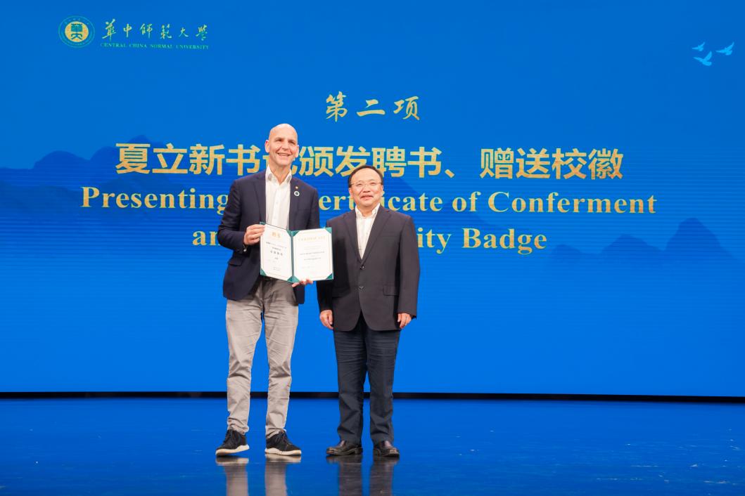 聘任仪式上,夏立新向本杰明·李斯特教授颁发了名誉教授聘书,并亲自为他佩戴校徽,象征着本杰明·李斯特教授正式成为我校学术共同体的重要一员。现场掌声雷动,见证了这一国际合作的里程碑时刻。