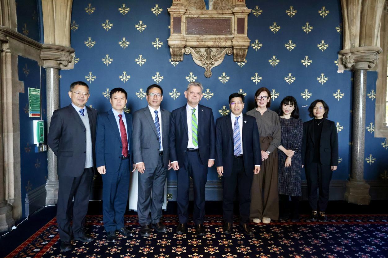 在格拉斯哥大学,彭双阶与校长安东尼·马斯凯特里(Anton Muscatelli)爵士、全球事务办公室中南亚合作部部长莫亚·博兰(Moyra Boland)等座谈。彭双阶表示,华中师大与格大合作渊源已久,期待两校进一步深化交流,在创新型人才培养、师生交流、科研合作、共建联合研究中心等方面开展务实合作。马斯凯特里指出,两校在教育、音乐等多个学科领域的合作已经取得了一些成果,期待进一步在生命科学、人工智能教育等领域开发新的合作项目。访问期间,彭双阶还看望了我校在格拉斯哥大学的交流学生,并与该校教育学院、亚当·斯密商学院,以及先进研究中心相关负责人举行了座谈。