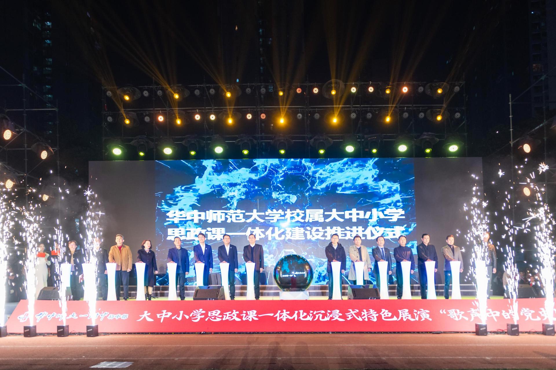 展演期间,还举行了“华中师范大学校属大中小学思政课一体化建设推进仪式”,旨在进一步加强我校和附属中小学及合作办学中小学的思政课建设的交流协作,打造思政课一体化建设体系。