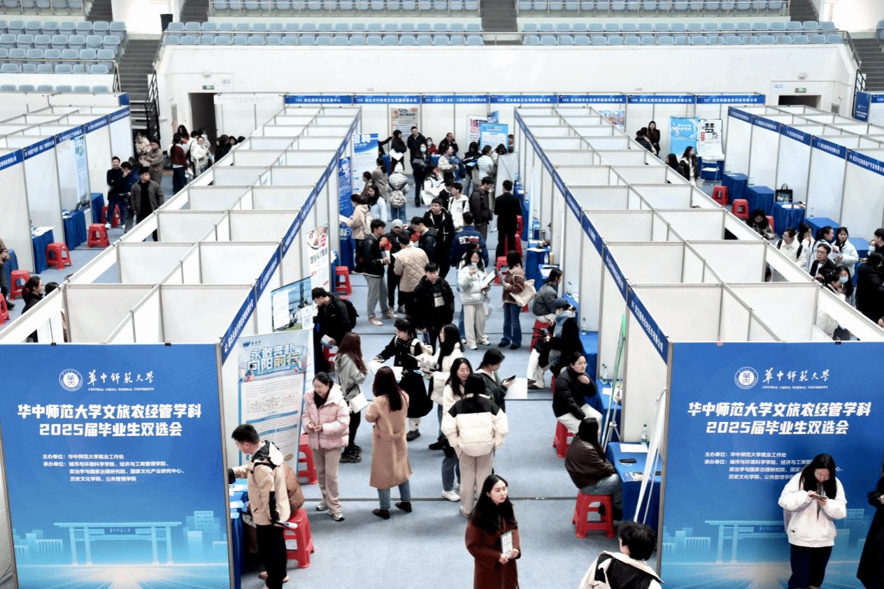华大在线讯(通讯员 郭曜宁 尹翠萍 羊蓥 韦喆)3月7日,由就业工作处主办,城市与环境科学学院、经济与工商管理学院、政治学与国家治理研究院、国家文化产业研究中心、历史文化学院、公共管理学院联合承办的华中师范大学文旅农经管学科2025届毕业生双选会在佑铭体育馆举行。