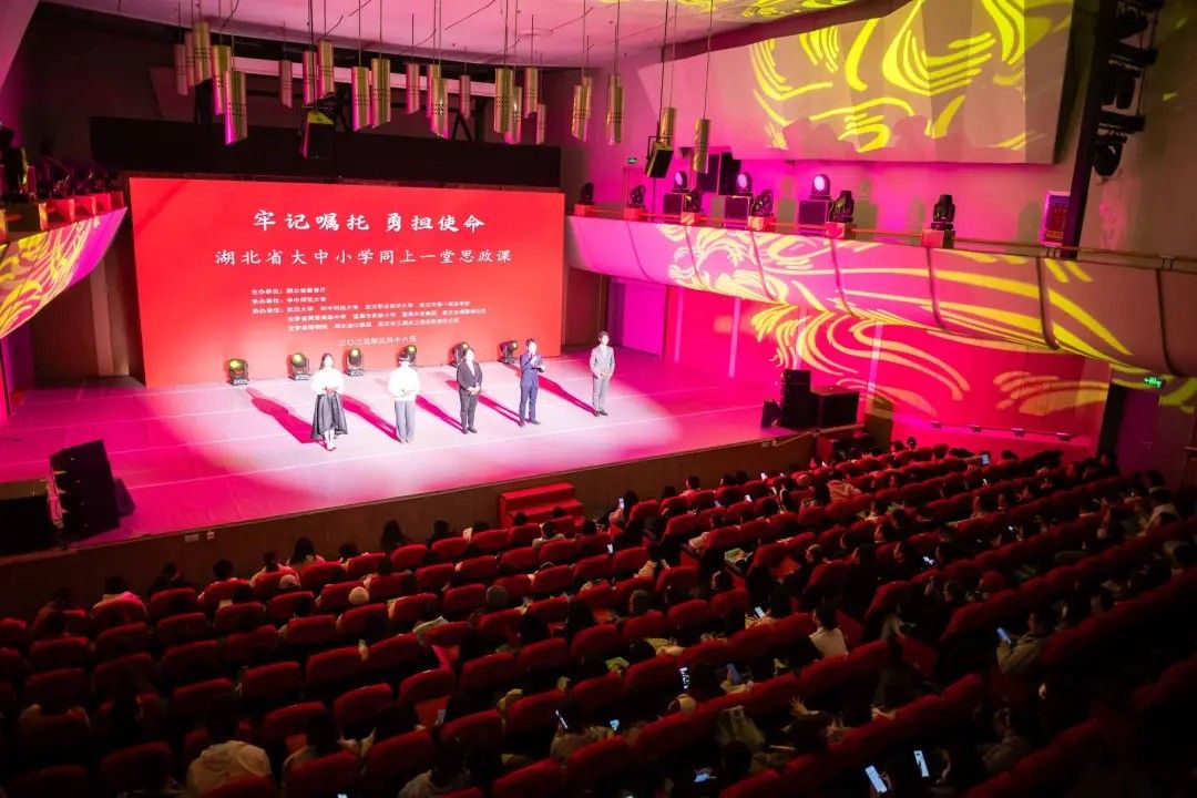 华大在线讯(通讯员 闫燕 岳坤峰)为深入学习贯彻习近平总书记关于学校思政课建设的重要讲话和重要指示精神,3月18日,“牢记嘱托 勇担使命——湖北省大中小学同上一堂思政课”展示活动在音乐厅举行。我校组织大中小学六个学段师生,以理论讲授、情景演绎、红歌传唱、经典朗诵等形式,“沉浸式”学习习近平总书记考察湖北的重要讲话精神。
