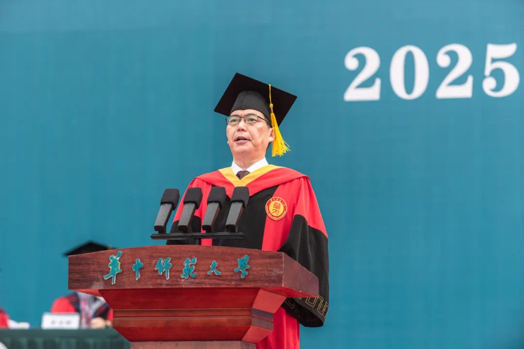 华大在线讯(通讯员 张晓冰 吴艳)6月18日,我校2025年毕业典礼暨学位授予仪式在佑铭体育场举行。校党委书记夏立新,校长彭双阶,校党委副书记查道林,副校长任友洲、李鸿飞,校党委副书记、纪委书记刘继文,副校长刘宏达,以及学校学术委员会代表、教师代表、校友代表、各职能部门和学院负责人出席,与家长代表共同见证2025届毕业生圆满完成学业,为同学们启程奔赴时代山海聚力饯行。典礼由校党委副书记陈迪明主持。