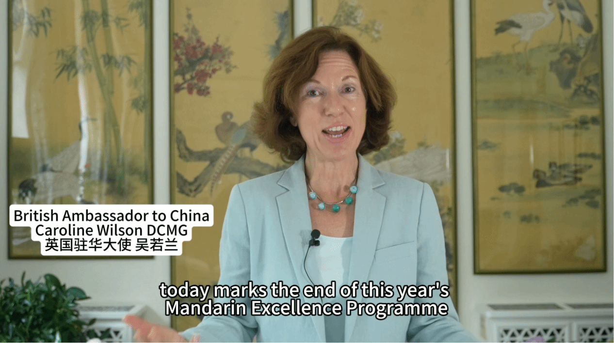 英国驻华大使吴若兰通过视频致辞。她强调,中国是一个具有全球影响力的国家,此次沉浸式体验对英国学生而言意义深远。她引用了成语“初生牛犊不怕虎”和“知行合一”,期望学生们能够勇敢无畏,通过实际行动获取真知,希望学生们返回英国后,将在中国的经历转化为持续学习中文的动力。