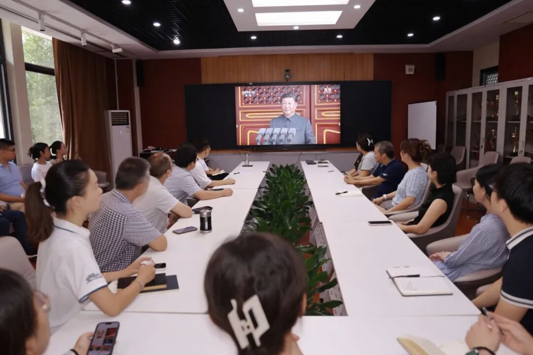 校党委书记夏立新表示,习近平总书记在纪念中国人民抗日战争暨世界反法西斯战争胜利80周年大会上的讲话思想深邃、意蕴深远,揭示了铭记历史、缅怀先烈、珍爱和平、开创未来的时代价值与深远意义,向世界再次宣示了中国维护和平正义、推动构建人类命运共同体的坚定立场,为我们在新征程上以中国式现代化全面推进强国建设、民族复兴伟业指明了前进方向、注入了强大动力。华中师范大学是一所和民族命运休戚与共、紧密相连的大学,学校深入挖掘西迁办学校史,将其作为爱国主义教育的生动教材,深度融入思政课程、课程思政的全过程、各环节,以伟大抗战精神和西迁办学史诗滋养“强国一代”,引导激励广大青年学生继承先辈遗志、赓续红色血脉。面对“强国建设、教育何为”的时代之问,华师将坚持以习近平新时代中国特色社会主义思想为指导,全面落实新时代立德树人工程,大力传承和弘扬伟大抗战精神,以一以贯之的赤诚情怀坚守育人初心,一往无前的奋斗姿态锐意改革创新,努力把学习成果转化为服务教育强国建设的生动实践,为全面推进中华民族伟大复兴作出新的更大贡献。
