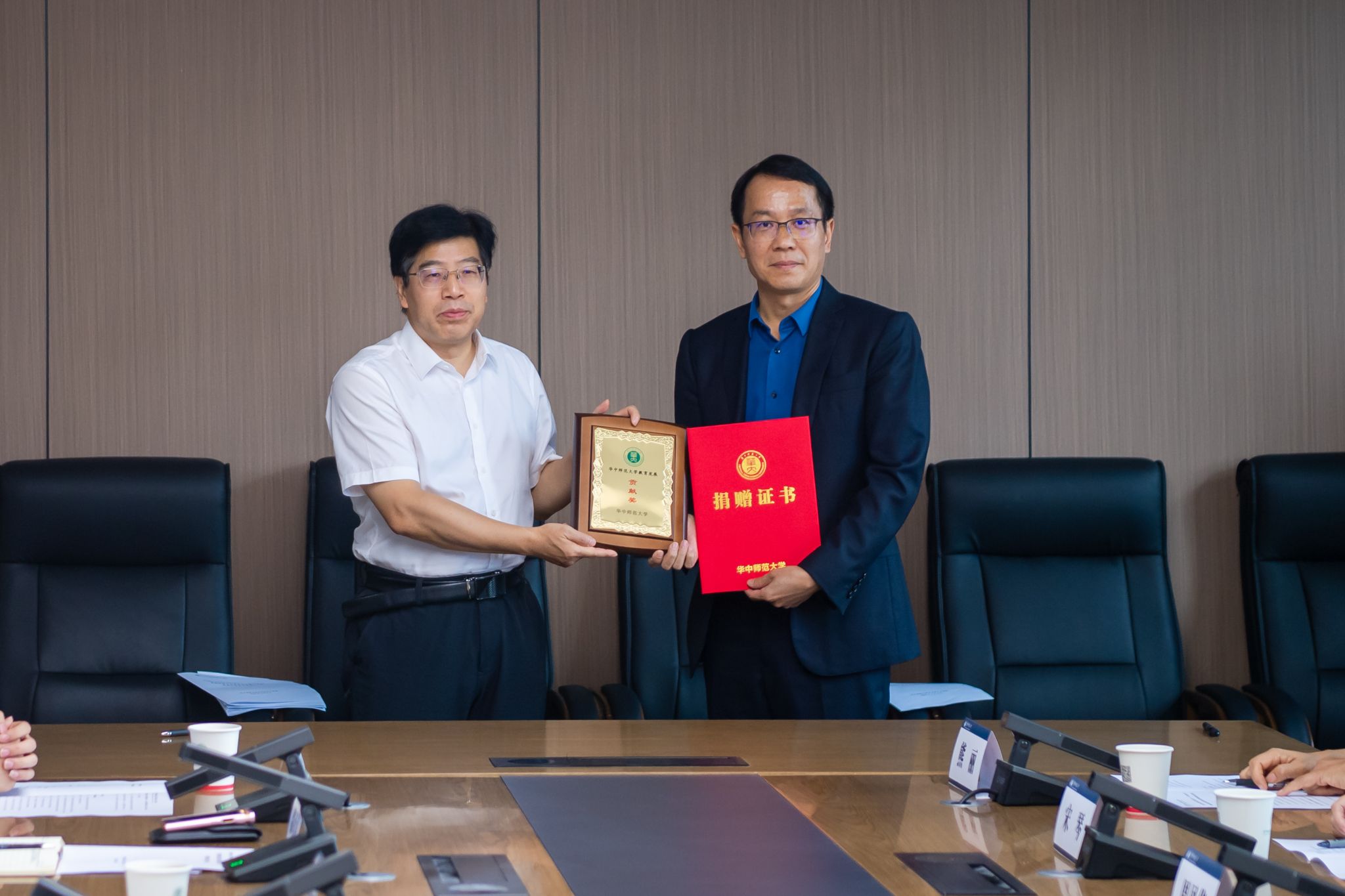 华进联合专利商标代理有限公司与我校签署捐赠协议,捐资50万元设立“华中师范大学逻辑学教育发展基金”,用于支持我校逻辑学教育发展。彭双阶代表学校向胡杰颁发捐赠证书、纪念奖牌。