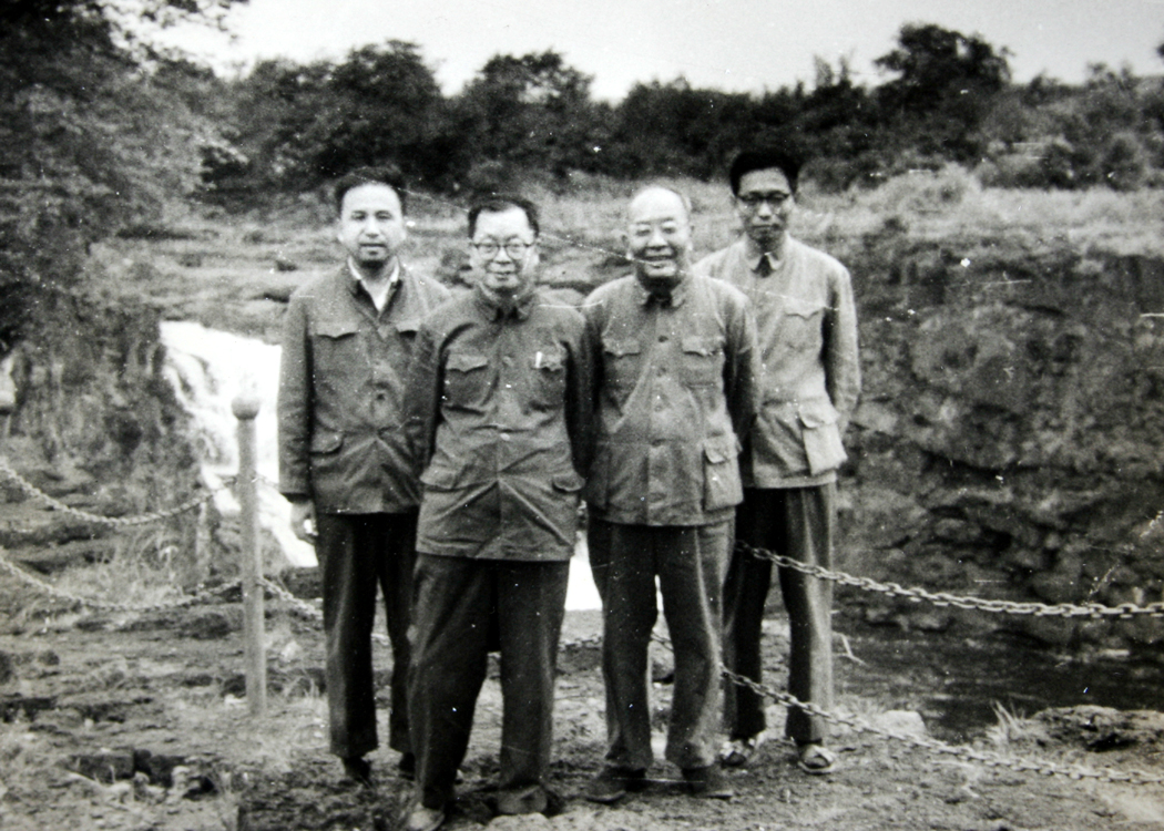 镜泊湖之行留影,左起:章开沅、丁名楠、黎澍、陈铁健