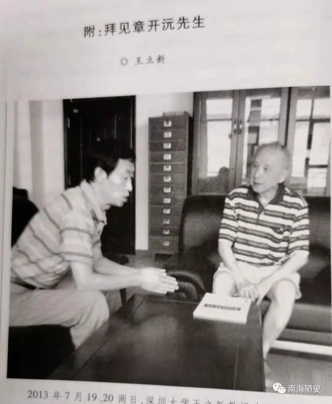 我得以拜见先生的时间,是2013年7月20日上午10时,地点在华中师范大学中国近代史研究所章先生的办公室里,当时先生应该是87周岁。