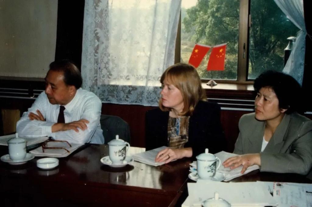 1985年,章开沅(中)与雅礼协会主任Dr starr晤谈