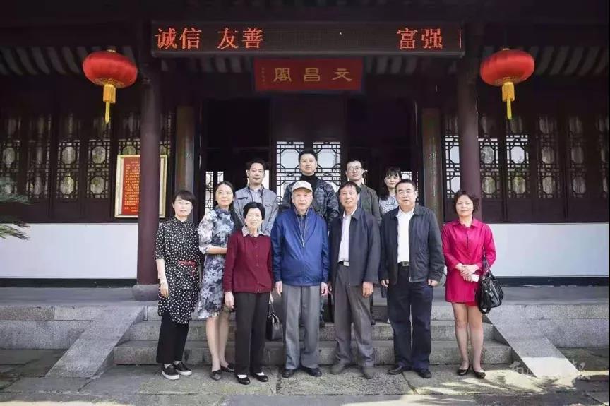 2017年4月28日,章开沅先生与本文作者(张晓宇)等在湖州荻港村合影。