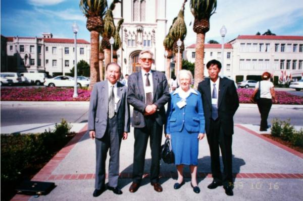 照片摄于1999年10月16日,作者与章先生参加旧金山大学举办的国际会议,左起为章开沅、许理和(Erik Zürcher)、鲁珍晞、刘家峰