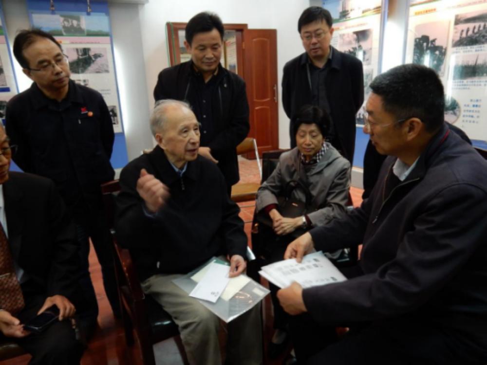 我们有生以来第一次看到这样规模宏大的露天矿坑,与南山职工一起在坑边合影,缅怀先辈筚路蓝缕、披荆斩棘的开辟之功。随后到南山公司参观矿史展览馆,朱青山经理亲自为我们讲解矿山从1917年至今的历史进程。他是一个典型的北方汉子,曾在内蒙古生活、工作10余年,更增加了刚毅与豪爽的气度。他热爱矿区这片热土,与全体职工日以继夜地努力采掘,为马钢源源不绝地提供“粮食”,创造了极其辉煌的业绩,而今将亲手为公司划上句号。他对早期的凹山开发史历历如数家珍,对凹山的每个角落也了如指掌。他断言曾见过我幼年住过的房宅,以及我父亲当年的办公处所,他所描绘的与我带去的老照片正好相符。他和南山铁矿一样,见证过自己的辉煌,而又将诀别自己终生从事的采掘伟业。但他毫无伤感,坦然说:“这是必经之路,与人生一样。最初是从手工开采转变为机械开采,随后是开采与冶炼合为一体,现在则进入地质环境治理的尾声。但这不是结束,而是新的开始,我们将以这巨大的采坑为起点,转型为保护并优化环境的历史文化旅游企业。从破坏环境的采掘开始,转变为可持续发展的环境保护工作,这岂不是又一次华丽的转身。”我看见他坚毅的眼光,以洪亮的声音立下誓言,仿佛是一个带领千军万马冲向另一个战场的将军。凹山啊,凹山,你历经百年沧桑,终于又获得新生命!我向朱经理赠送新编家谱、宝兴铁矿公司创办阶段的原始档案复印件以及若干我幼时在矿山居住时老照片,借以帮助他们建立更为充实的矿史博物馆。