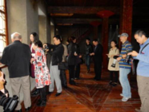 10月24日,连绵秋雨停止,我们在师大李琳琦、房列曙诸老师的陪同下,前往益新公司旧址。下车后扑面而来的是一片生机勃勃的新气象,工厂主楼已全部修缮完毕,并且利用原有仓库改建6座楼房,此外还另建一座红色新楼。园林与道路井然有序,已有若干文化、科技企业入住,青年企业园更显露出朝气蓬勃。电子屏幕上闪现“热烈欢迎章开沅先生重回故里,文化寻根”。创意园总经理彭丽俊女士与电视台、芜湖日报等新闻记者早已等候多时。