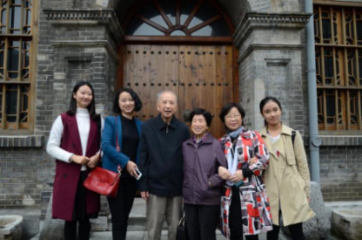 (章开沅夫妇及女儿与安徽师大老师留影)