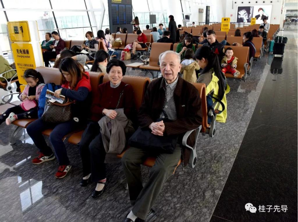 91岁章开沅先生和86岁黄怀玉夫人在天河机场候机。